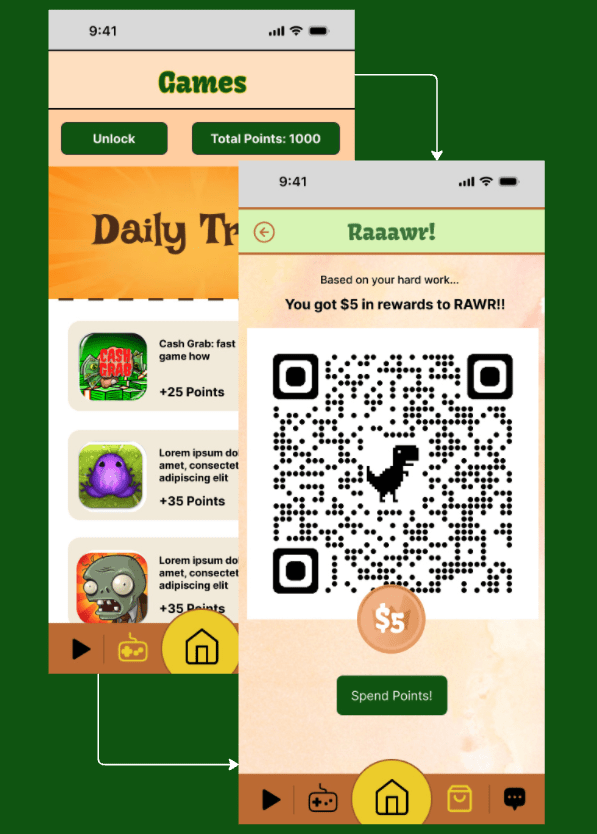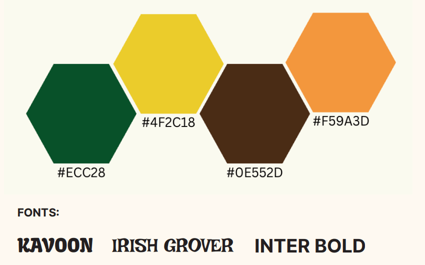 Our focus on Gen Z made us want to think outside the box for a lot of your colors and fonts. We decided on staying away from the traditional colors and fonts that apps like Credit Karma and Bank of America have (reds and blues especially). We want to make our app stand out amongst the crowd, so we decided on a brown, green and orange/yellow color palette with Inter, Irish Grover and Kavoon as our fonts.