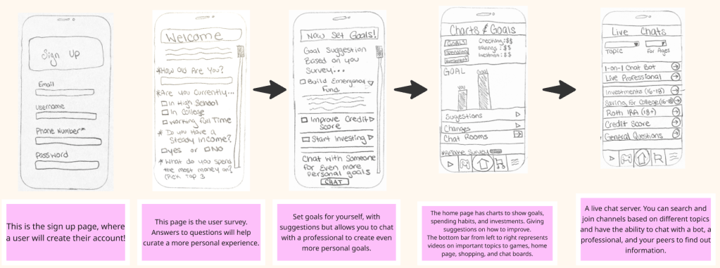 To learn about the steps of a design sprint, I was tasked with creating an app with a group of people from May 19th to June 27th. Within this design sprint, we were tasked with making an app suitable for Gen Z to help teach them about how to best manage their finances, as Gen Z especially consists of lots of ages, with its lowest being 13 and its highest being 28.