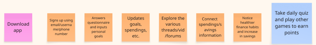 Our next priority was the user flow and storyboard. Using the sketches, we worked on creating a user flow that helped indicated where the user would be able to go in PennyPal. This user flow became the starter of the storyboard created.