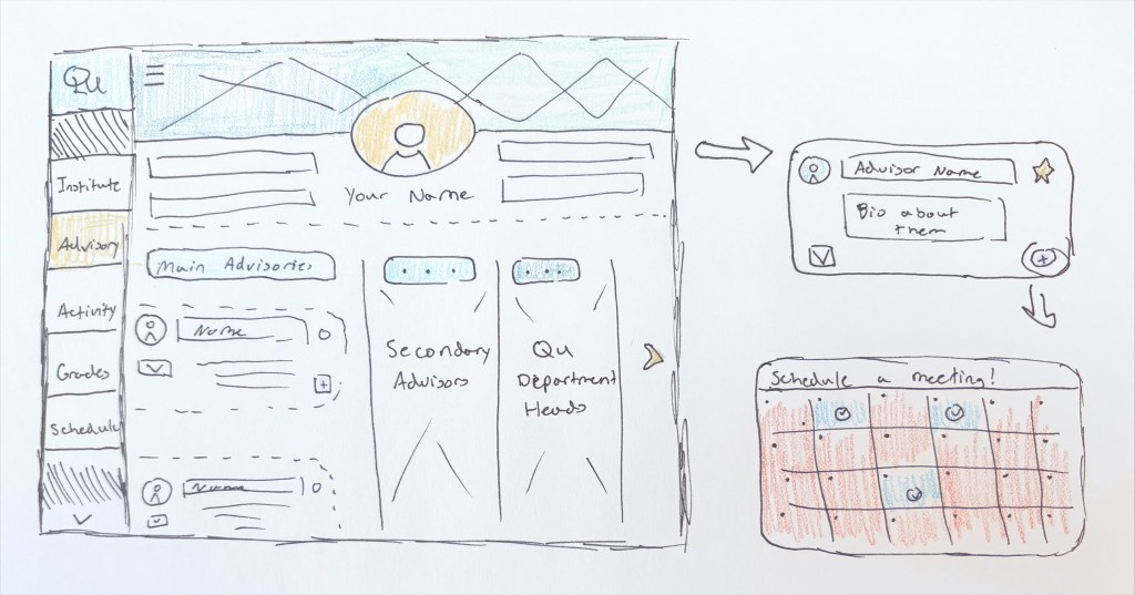 She pointed out that while this solves the access, it didn’t solve the communication barrier fully. Elyse recommended that a schedule feature could be implemented with the filter to help make meetings with their advisors. She also recommended making the filter be full page. With her ideas in mind, I reevaluated the filter and refined the idea to a full prototype.