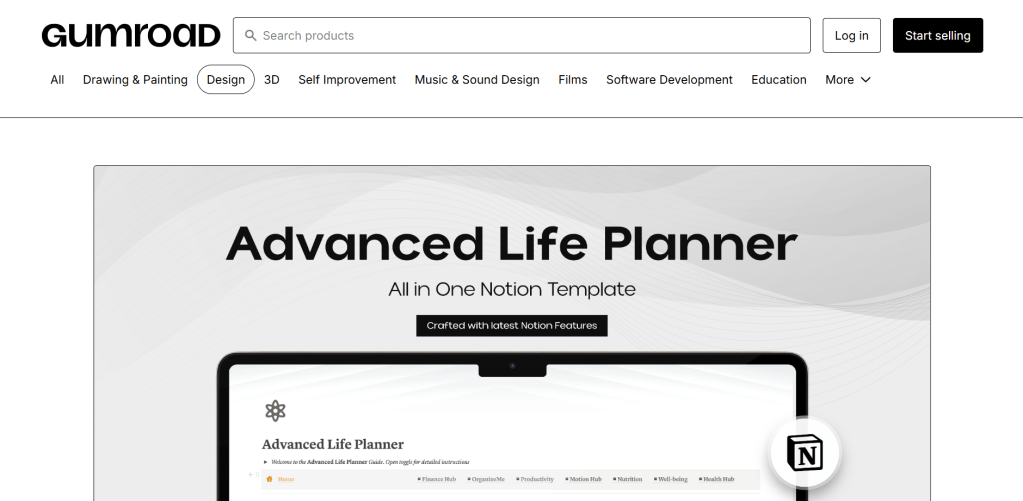 - Gumroad: provided a lot of products, but for health, it had a strong emphasis on physical items like books, or had outside templates to help. Had okay pricing.